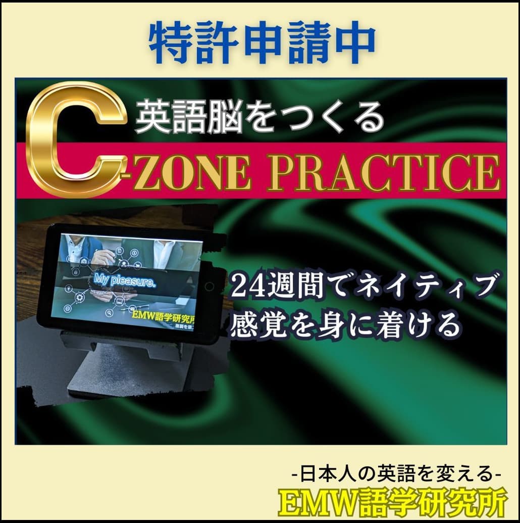 私が開発したC-zone Practiceは日本の英語学習者が英語で発想する能力を付けるために開発した英語脳開発専用の瞬間英作プログラムです。6か月間25週間でA~Fの項目別に私自身が講義を行った後、約700の瞬間英作をマスターしていただきます。C-zone Practiceとして個別販売もしており、こちらから1週間無料でお試しいただけます。