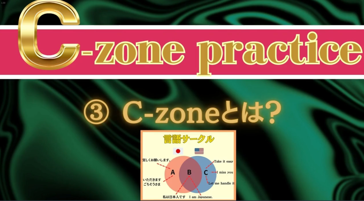 こちらでは言語サークルとC-ZONEの概念をプロがもう少し詳しく解説しています。今までの学習の盲点は何か、C-ZONE PRACTICEの何がよいのかが理解できると思います。こちらに登録で今すぐ1週間お試しいただけます。